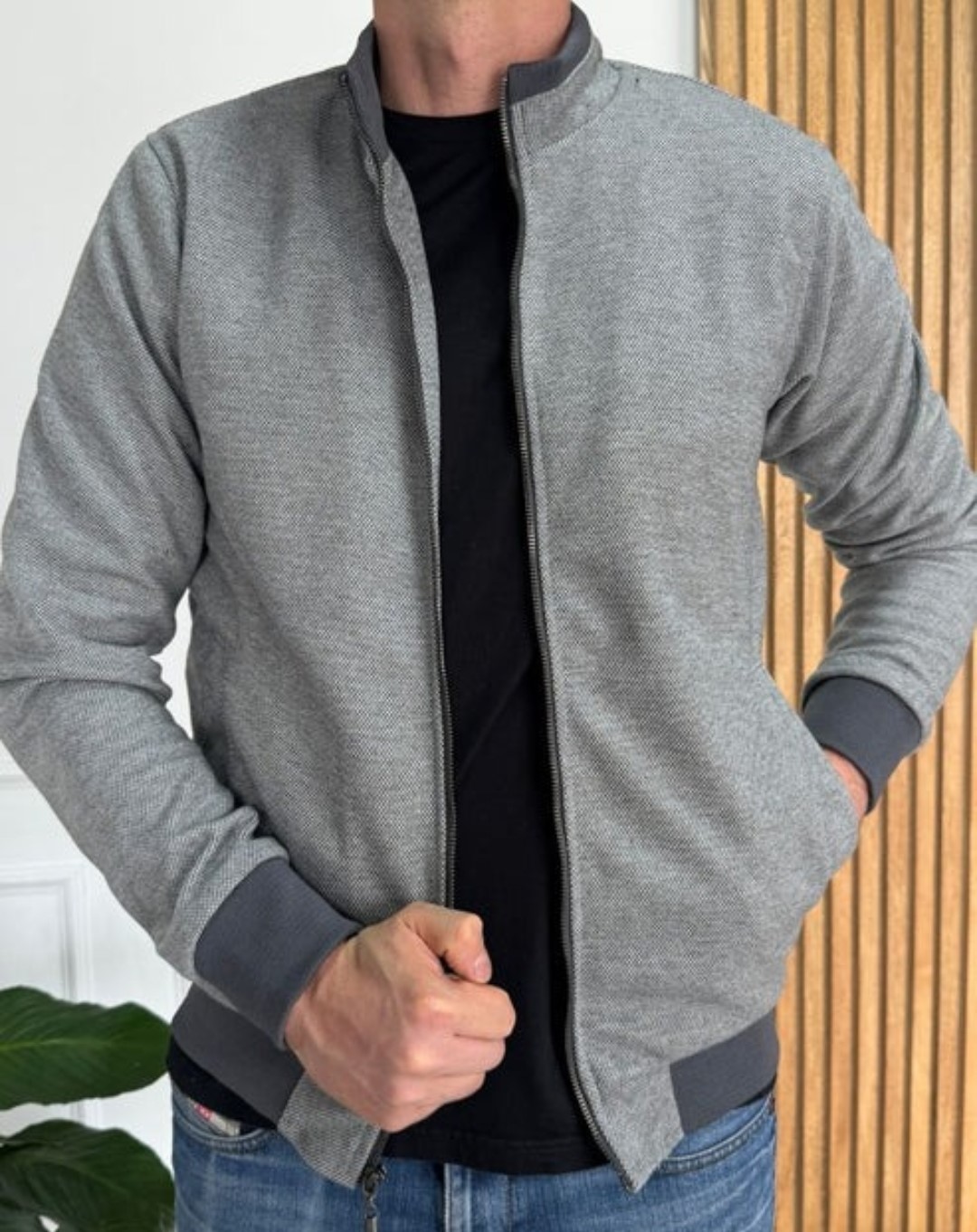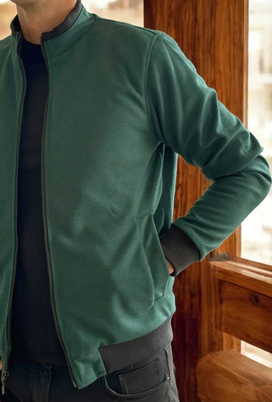 Prenda elaborada en paño, silueta slim fit.
